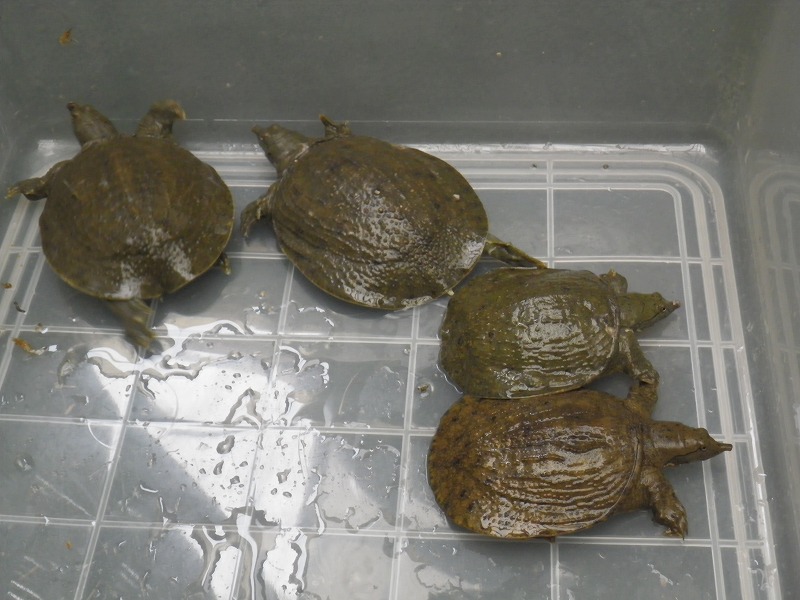 生態:本州・四国・九州・中国及びその周辺に分布。日本古来種を“キョクトウスッポン”とし、大陸産個体を“シナスッポン”として分ける事もあるが、見かけ上は選別不可能。一説によると“キョクトウスッポン”の方が大型化するとの事。日本最大記録は38.5cm・7.3kg。