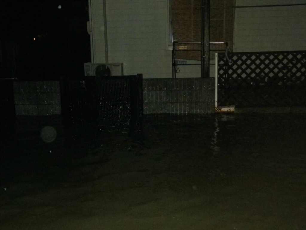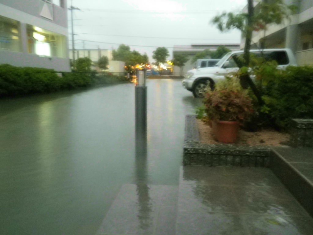 翌日の昼ごろには駐車場からは水が引いてましたが、近所の住宅街は夕方過ぎても道路が見えない状況でした・・・