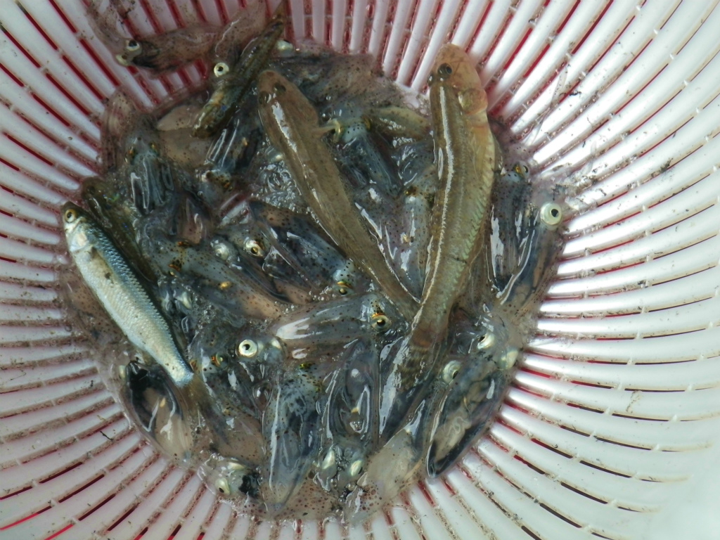 このエイは、煮付けにしていただきました。あとはハゼ・ママカリなどの小物、このへんは素揚げにしていただきました。それと入ったのはコノシロ、これは捌いて塩焼きにしました。大きなボラも入りましたが、さすがに内湾のボラは食っても不味いのでリリースしました。