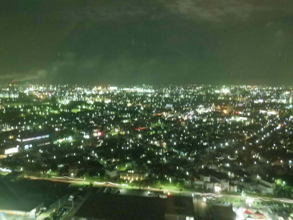 初日、現地に着いたのは夕方だったので、ゆっくり見る時間がなく、夜に朱鷺メッセという建物の最上階で夜景を観賞・・・京都よりキレイかも・・・