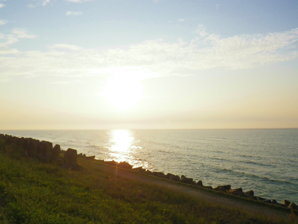 日本海に沈む夕日などを眺めつつ帰路に・・・